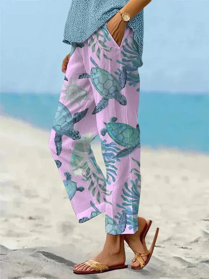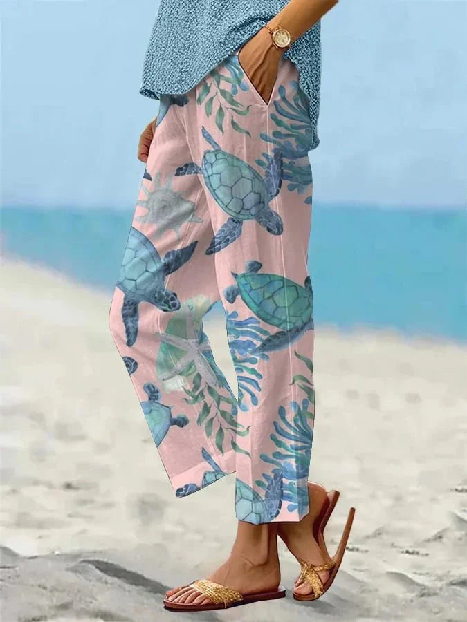 Slip into the perfect blend of style and comfort with the Sally Relaxed Casual Pants. Designed for easygoing days and laid-back adventures, these lightweight pants feature a beautiful floral and turtle pattern, adding a touch of boho charm to your wardrobe. With a relaxed fit, practical pockets, and a mid-waist design, they are ideal for casual outings, travel, or simply lounging in style.